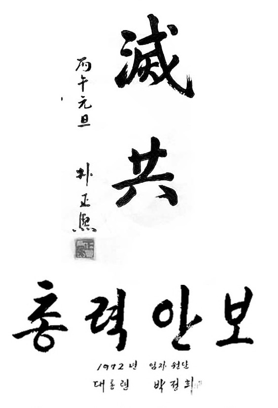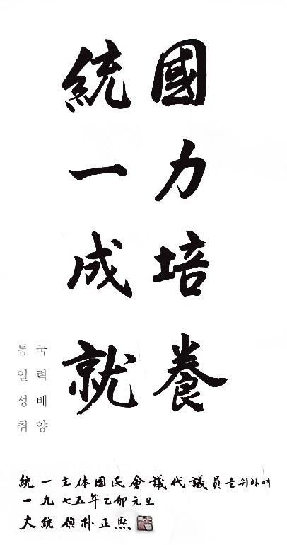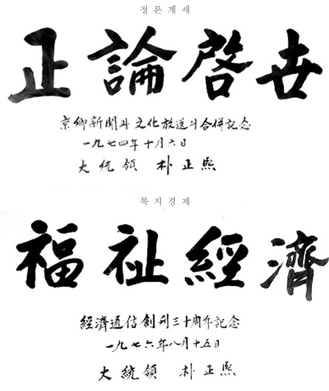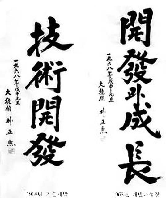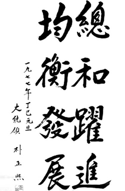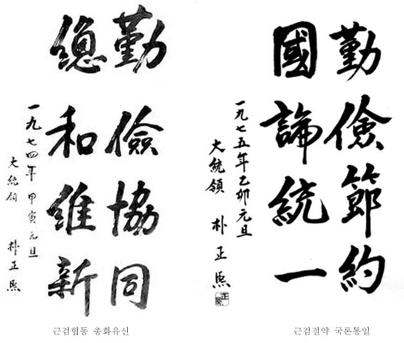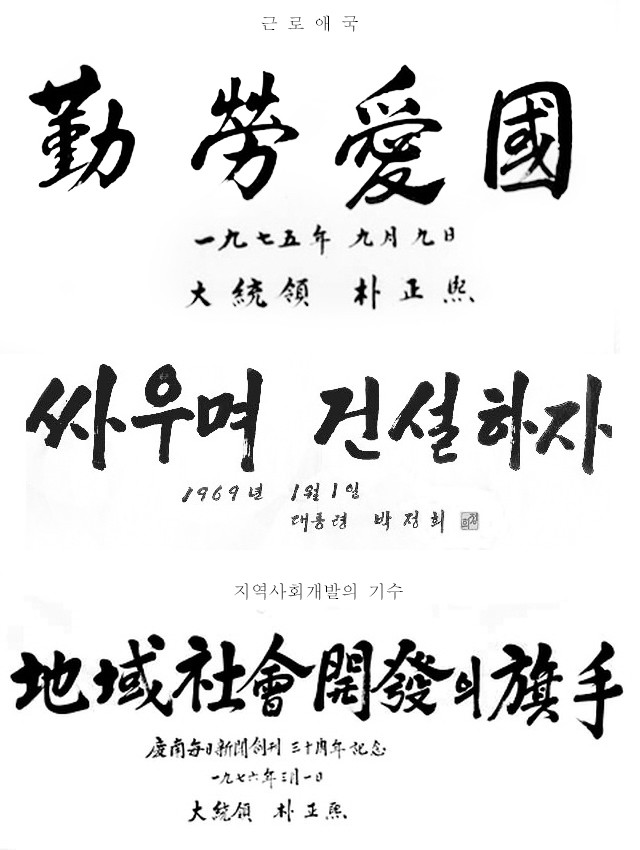 박정희 대통령은 글씨체도 훌륭하지만 휘호모음 작업을 하면서 느낀것이 나라의 지도자가 뚜렷한 목표와 주관을 가지고 있었다는점. 따라서 국가의 목표와 국민들이 해야할바가 무엇인지를 정확하게 알게하여 이끌었다는 점.