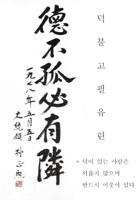 박정희 대통령은 생전에 유명한 서예가였습니다. 독특한 자기만의 필체로 훌륭한 평가를 받습니다.
